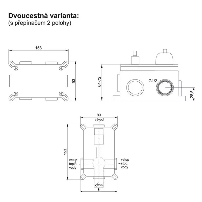 Dvojcestná variant (s prepínačom 2 polohy) je určená do sprchových kútov s ručnou a hlavovou sprchou alebo k vani s napúšťaním prepadom a možnosťou sprchovania.