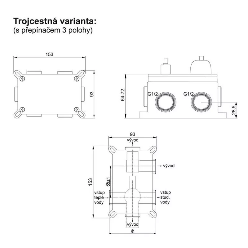 - Viana sprchová batéria podomietková s trojcestným prepínačom, Mbox, hranatý kryt
