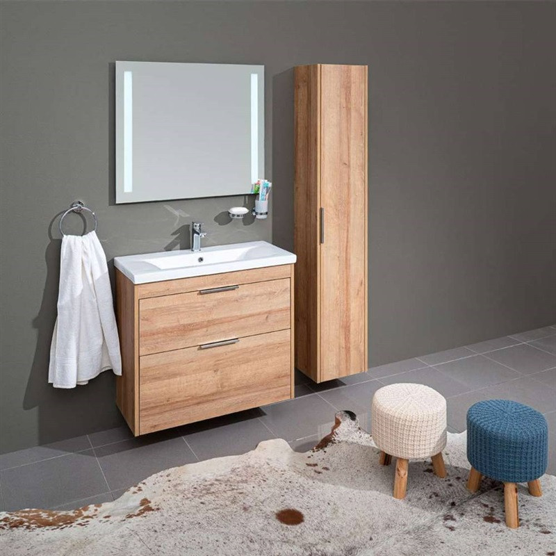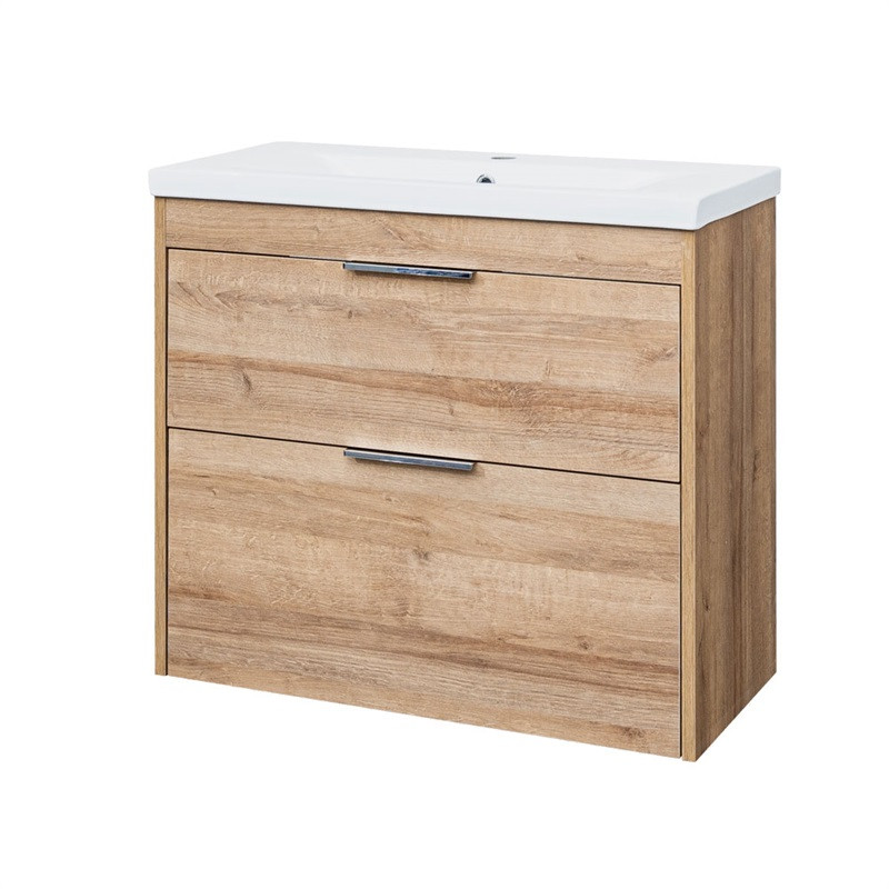 - Vigo, kúpeľňová skrinka s keramickým umývadlom 80 cm, dub Riviera