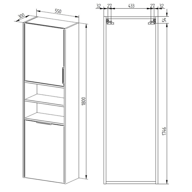 Vigo, kúpeľňová skrinka vysoká s košom, 530x1800x3000 mm,, ľavé alebo pravé otváranie, dub Riviera