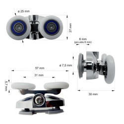 Vodiace kladky pevné, sada 4 ks, horná