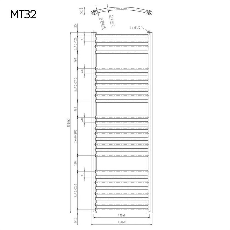 - Vykurovací rebrík, oblý, 450x1330 mm, biely