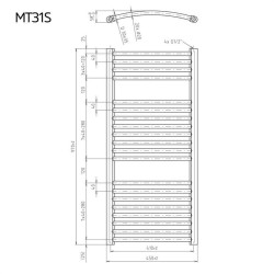 - Vykurovací rebrík, oblý, 450x970 mm, biely, stredové pripojenie