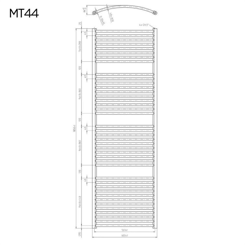 - Vykurovací rebrík, oblý, 600x1850 mm, biely