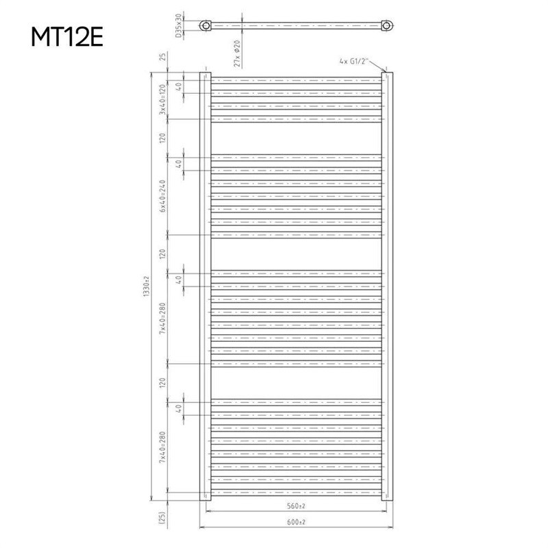 - Vykurovací rebrík rovný 600x1330 mm, biely, elektrický