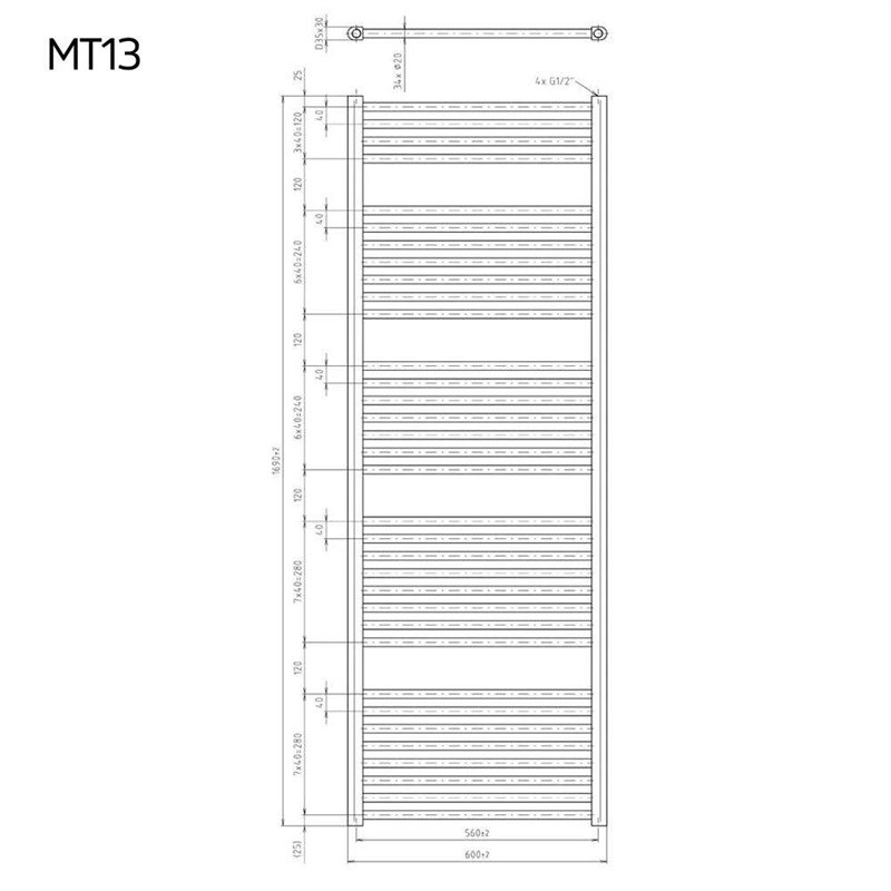 - Vykurovací rebrík, rovný, 600x1690 mm, biely