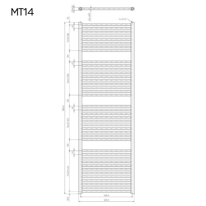 - Vykurovací rebrík, rovný, 600x1850 mm, biely