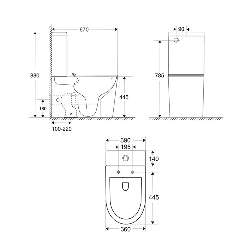 WC kombi, vyvýšené, vario odpad, kapotované, Smart Flush RIMLESS, 390x880x670mm, keramické, vr. nádržky VSD91N a sedátka CSS113S, spláchnutie 4/6 L.