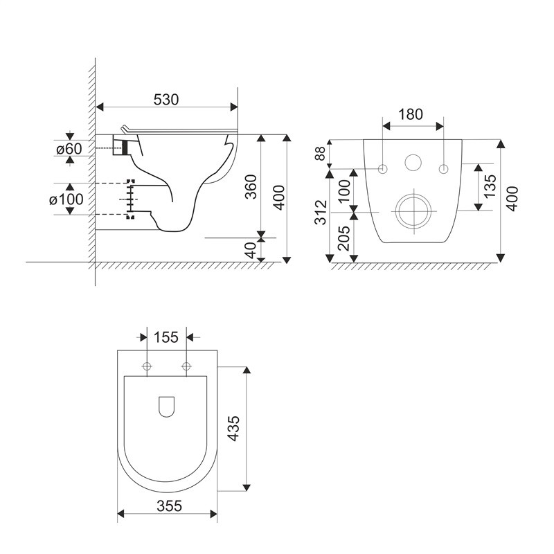 WC závesné, RIMLESS, 530x355x360, keramické, vr. sedátka CSS113S