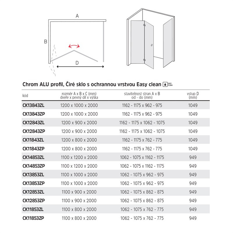 - Zalamovací sprchový kút, Novea, obdĺžnik, 100x80 cm, chróm ALU, sklo Číre, dvere pravé a pevný diel