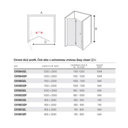 Hliníkové profily vo farbe chróm, sklo Číre, hrúbka skla 6 mm, dvere, rozmer 1000 mm, výška 2000 mm.