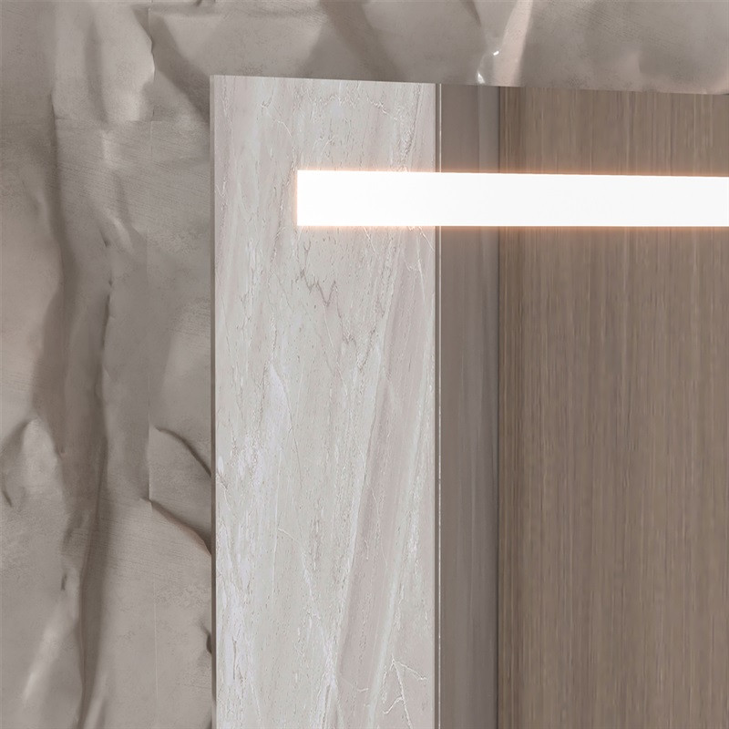 Elegantné zrkadlo s LED osvetlením. Zrkadlo sa spúšťa dotykovým senzorom umiestneným so spodnou prednou časťou zrkadla. Zrkadlo je vybavené úchytmi (závesy aj vhodné háčiky na stenu) na zvislé zavesenie. Pri zrkadlách s osvetlením odporúčame vývod elektriny umiestniť "na stred zrkadla". Dĺžka prívodného kábla je 0,8 m umožňuje pohodlnú montáž.